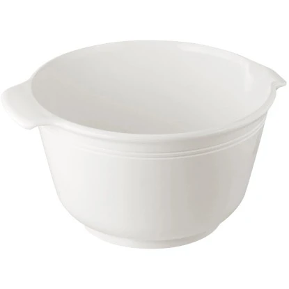 Die weiße Rührschüssel 3 l von Dr. Oetker besteht aus schlagfestem Kunststoff und verfügt über einen tropffreien Ausguss. Die Rührschüssel ist spülmaschinengeeignet und Made in Germany.