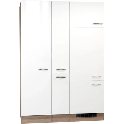 Sie möchten Ihre Küche ergänzen? Mit diesem individuell stellbaren Modul aus drei Hochschränken wird es zum Kinderspiel. Ein Geschirrschrank mit vier Fächern, ein moderner Apothekerschrank mit zwei Auszügen und der geräumige Geräteumbauschrank inklusive einer energieeffizienten Kühleinheit lässt Ihre Küche im Handumdrehen auf Profi-Format wachsen.