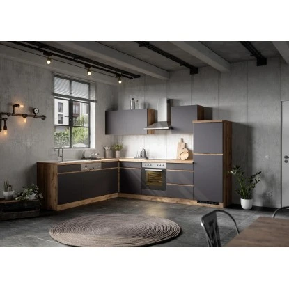 Mit dem Spülenunterschrank Turin von Held Möbel mit hochwertigen MDF-Fronten können Sie ihre Küchenzeile perfekt ergänzen. Hinter der Drehtür befindet sich ein Ablagefach zur individuellen Nutzung. Optisch begeistert der Spülenunterschrank durch die klaren Linien sowie die zweifarbige Gestaltung. Da der Schrank in zwei Farbkombinationen verfügbar ist, können Sie die Küche im Mix-and-Match Stil einrichten. Eine 28 mm starke Arbeitsplatte in Eiche Dekor ohne Ausschnitt für einen variablen Einsatz der Spüle ist inklusive.