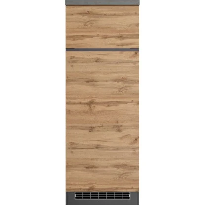 Mit dem Umbauschrank für Kühl/Gefrierkombi Turin von Held Möbel mit hochwertigen MDF-Fronten können Sie ihre Küchenzeile perfekt ergänzen. Optisch begeistert der Schrank durch die klaren Linien sowie die zweifarbige Gestaltung. Da der Schrank in zwei Farbkombinationen verfügbar ist, können Sie die Küche im Mix-and-Match Stil einrichten.