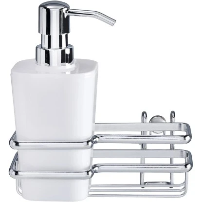 Der herausnehmbare Seifenspender aus hochwertigem, schwerem Kunststoff kann individuell mit Flüssigseife oder Waschlotion gefüllt werden. Durch leichten Druck auf den Dosierknopf wird die gewünschte Menge Seife bzw. Lotion herausgepumpt. Das Spül-Set lässt sich genau dort befestigen, wo es gerade benötigt wird. Im Lieferumfang sind Schrauben und Dübel für die Wandmontage enthalten.
